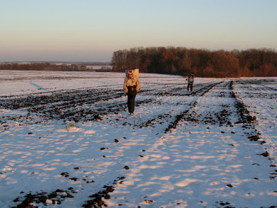 На второй день порадовало солнце и небольшой морозец, без которого идти по полям было бы намного сложнее (вернее - грязнее). Здесь немного приобщились к сельскому хозяйству, наблюдая как идет уборка кукурузы.