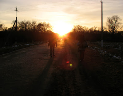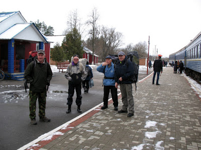 Финишировали в Глыбном. Хотели уехать на пригородном поезде, да задержались во время обеденного перекуса. Поэтому уже на закате солнца вышли на автотрассу, где уже вскоре нас подобрал попутный автобус, идущий из Краснополья на Сумы.
