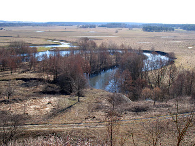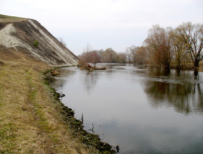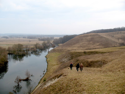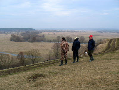 Первая остановка в Груновке также традиционна. С вершины меловой горы в очередной раз осматриваем широкую панораму поймы Псла. На этот раз полая вода поднялась не надолго всего-то на 50-70 см, и уже к концу марта река практически вернулась в свои обычные берега. Это не очень радует. Хороший разливдаёт реке шанс лучше самоочиститься, да и условия для нереста рыбы в такие годы намного более благоприятны.