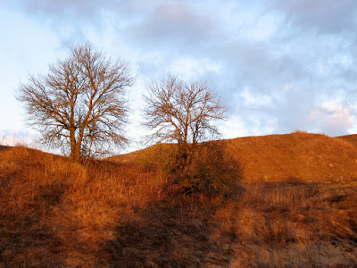 Первая утренняя прогулка - на высокие прибрежные холмы. На вершине одного из них заметны остатки древнего Могрицкого городища. Здешние холмы и открывающиеся с них широкие панорамы активно используются для творческих опытов многими сумскими мастерами фотографии. Да и простой любитель никогда не упустит возможность сделать селфи на фоне роскошных могрицких просторов.