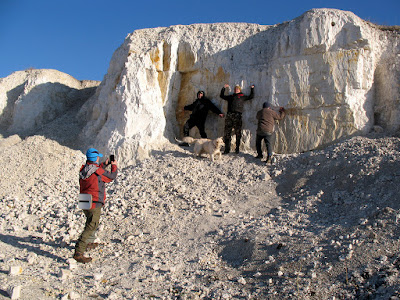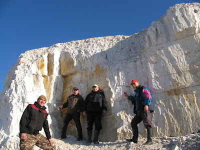 Очередную, уже групповую прогулку совершили в сторону заброшенного мелового карьера. Его обрывистая 6-7-метровая стена из чистого мела выглядит почти как инопланетный объект на фоне стандартного по виду окружающего сельского пейзажа.