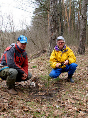 В районе детского лагеря "Звездный" в Ольшанке провели небольшую екологическую акцию. Посадили на изрядно "полысевшей" опушке соснового леса несколько молодых саженцев сосны, привезенных из Сум хозяйственным и предусмотрительным Виктором Васильевичем.