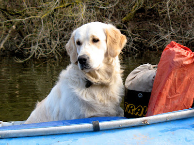 В команде на этот раз 4 экипажа: восемь человек не считая собаки: доброго и активного ретривера Рика. Он в байдарке всем своим видом выполняет роль штурмана, или в крайнем случае - впередсмотрящего. Ну а хозяин в это время работает простым галерником.