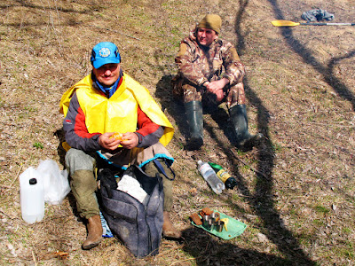 Открытий для себя на этот раз не искали: маршрут от Мирополья до Сум по верховьям Псла проходим почти каждой весной. Главное собраться старым коллективом, пообщаться и отлично провести отведенное для весеннего сплава время. Но вначале - неспешный стапель и небольшое традиционное застолье.
