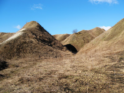 От меловой горы переходим на место базирования участников лэнд-арт фестиваля. За зиму многие сооруженные в прошлом году арт-объекты изрядно потеряли в изяществе и выразительности. Но тем не менее продолжают вызывать интерес, и желание приехать сюда летом, на праздник Ивана Купалы. Как раз в это время и проводятся ежегодные могрицкие лэнд-арт фестивали.