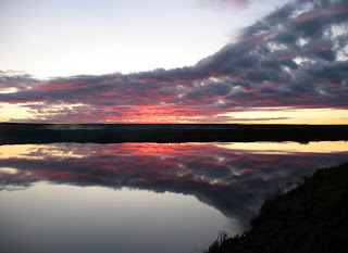 В ожидании чая наблюдали красивейший оранжево-красный северный закат. Попробовали и порыбачить. Получилось удачно. Сначала Иванов вытащил небольшую щучку, а затем повезло и мне: еще одна такого же размера.